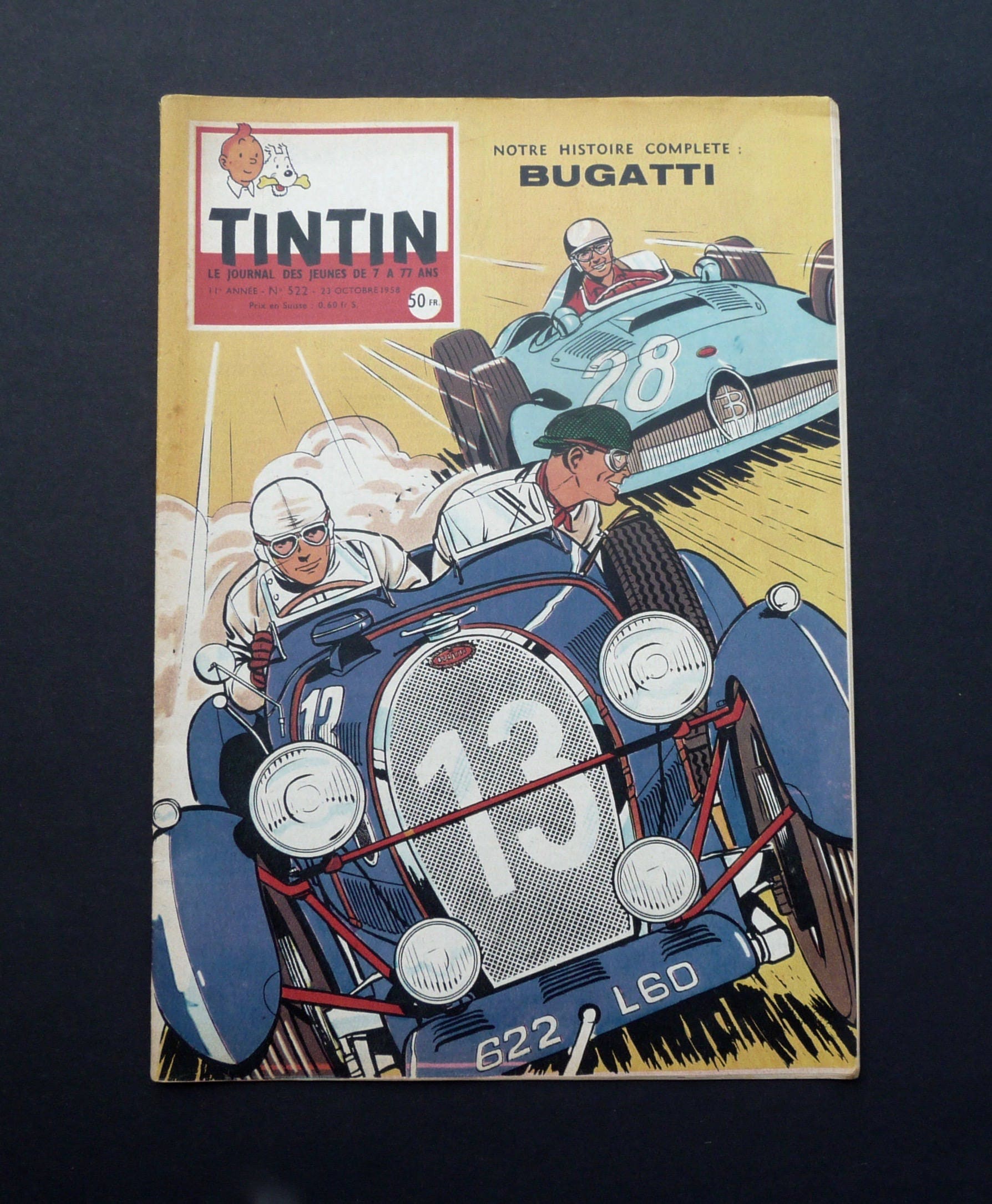 Tintin.23 newspaper October 1958. 11th annee.n.522. French Edition. Race car. Bugatti. Citroen