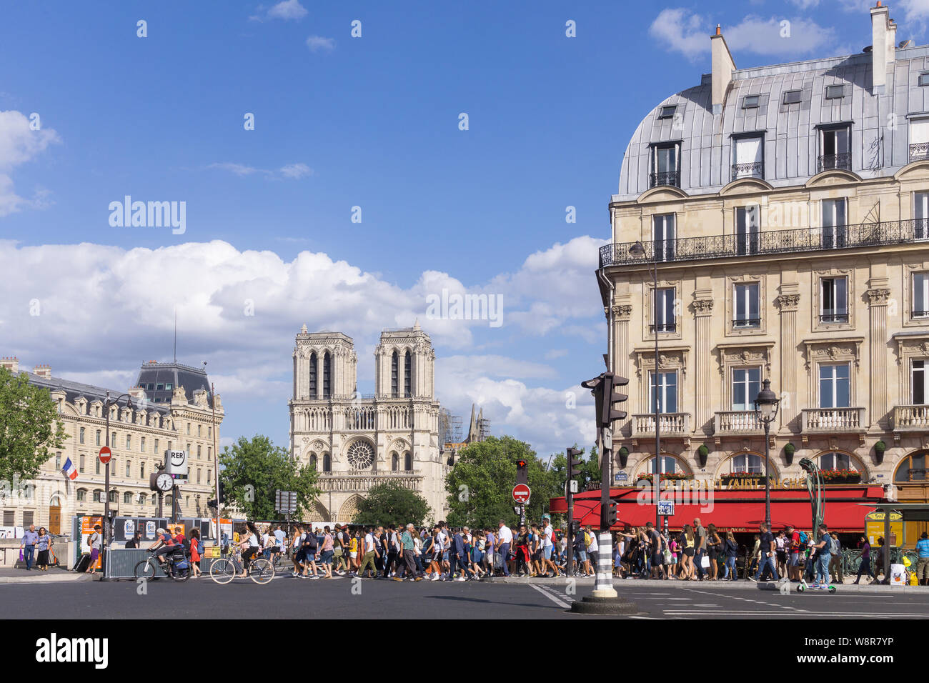 Notre Dame Cathedral front view, taken from Pont Saint Michel. Paris, France Stock Photo Alamy